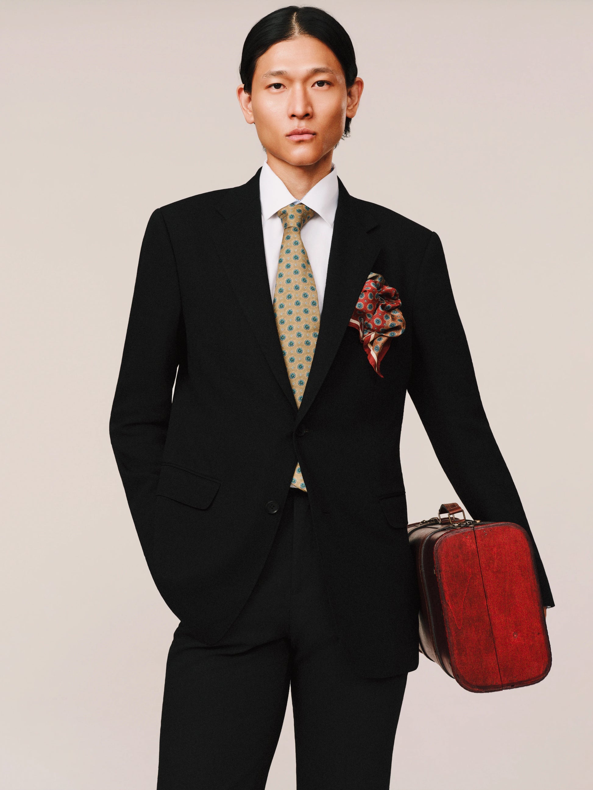 • Composed in four colours, this pocket square offers unique versatility in wear